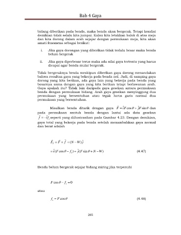 bidang diberikan pada benda, maka benda akan bergerak. Tetapi kondisi
