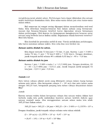 satuan menjadi sama. Jika menggunakan satuan sekon maka kita ubah