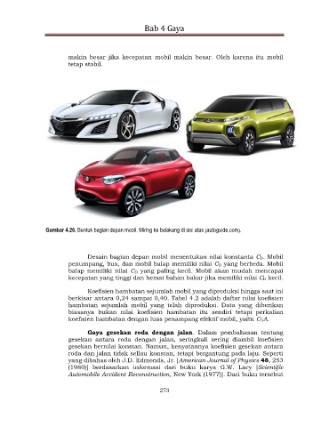 Desain bagian depan mobil menentukan nilai konstanta CD. Mobil