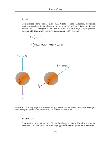 Gambar 4.29 Bola yang bergerak di udara memiliki gaya hambat yang memenuhi hukun Stokes. Besar gaya