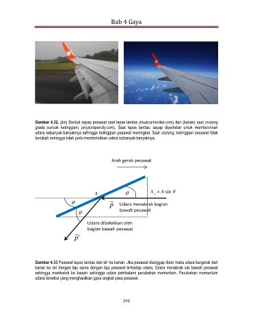 Gambar 4.32. (kiri) Bentuk sayap pesawat saat lepas landas (musicamoviles.com) dan (kanan) saat cruising