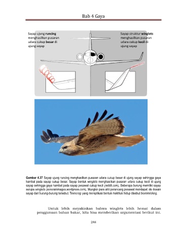 Gambar 4.37 Sayap ujung runcing menghasilkan pusaran udara cukup besar di ujung sayap sehingga gaya