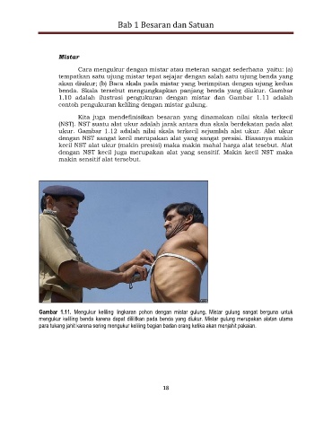 Gambar 1.11. Mengukur keliling lingkaran pohon dengan mistar gulung. Mistar gulung sangat berguna untuk