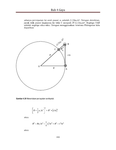 adanya percepatan ke arah pusat ac adalah (1/2)act . Dengan demikian,