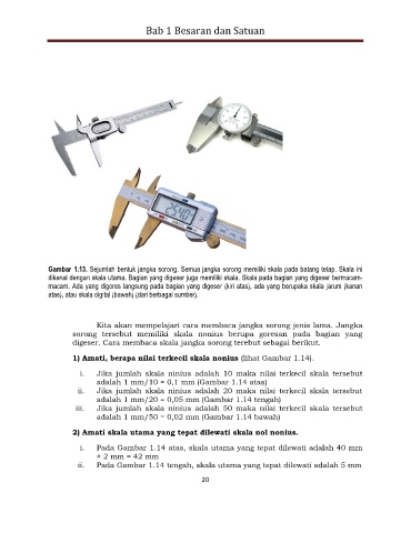 1) Amati, berapa nilai terkecil skala nonius (lihat Gambar 1.14).