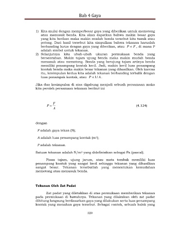 kontak benda maka makin besar tekanan yang dihasilkan. Oleh karena