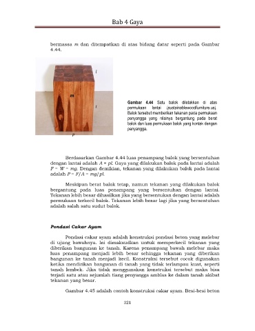 dengan lantai adalah A = pl. Gaya yang dilakukan balok pada lantai adalah