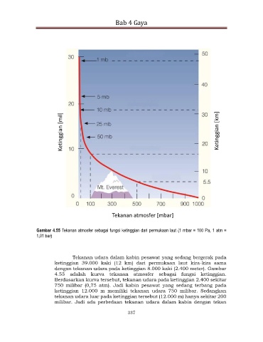 Gambar 4.55 Tekanan atmosfer sebagai fungsi ketinggian dari permukaan laut (1 mbar = 100 Pa, 1 atm =
