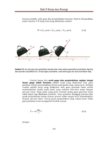 Gambar 5.9 Jika arah gaya dan perpindahan berubah-ubah maka selama perpindahan perpindahan dipotong