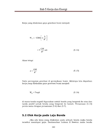 tanda positif untuk benda yang bergerak ke bawah. Persamaan (5.15)