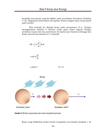5.12). Bagaimana keterkaitan kecepatan benda dengan kerja yang terjadi