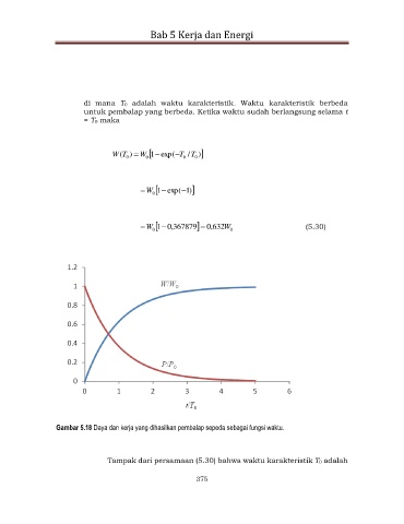 Gambar 5.18 Daya dan kerja yang dihasilkan pembalap sepeda sebagai fungsi waktu.