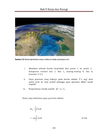 Gambar 5.21 Benda dipindahkan secara vertikan di sekitar permukaan bumi.
