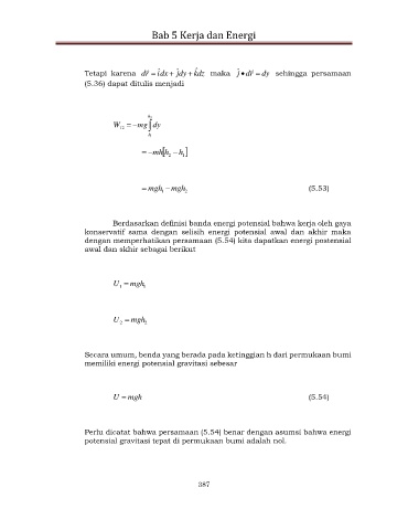 dengan memperhatikan persamaan (5.54) kita dapatkan energi postensial