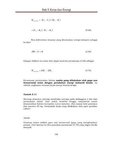 Persamaan menyatakan bahwa usaha yang dilakukan oleh gaya non