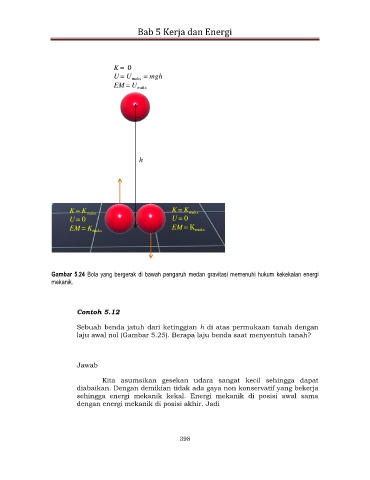 Gambar 5.24 Bola yang bergerak di bawah pengaruh medan gravitasi memenuhi hukum kekekalan energi
