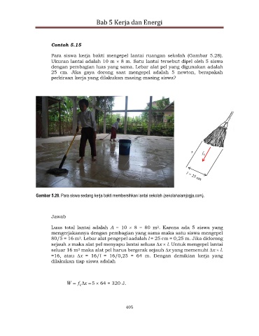 Ukuran lantai adalah 10 m 8 m. Satu lantai tersebut dipel oleh 5 siswa