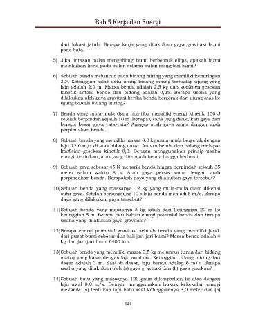 11) Sebuah benda yang massanya 5 kg jatuh dari ketinggian 20 m ke