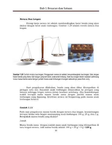 diukur dengan berat anak timbangan. Gambar 1.29 adalah contoh neraca dua
