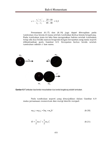 diilustrasikan pada Gambar 6.9. Kecepatan kedua benda setelah