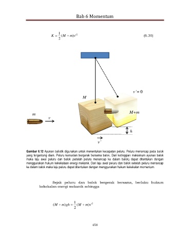 Gambar 6.12 Ayunan balistik digunakan untuk menentukan kecapatan peluru. Peluru menancap pada balok