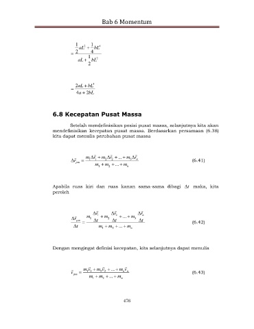 mendefinisikan kecepatan pusat massa. Berdasarkan persamaan (6.38)