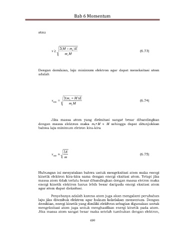 Dengan demikian, laju minimum elektron agar dapat meneksitasi atom