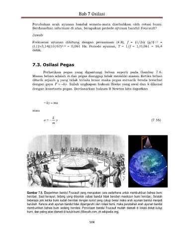 Gambar 7.5. Eksperimen bandul Foucault yang merupakan cara sederhana untuk membuktikan bahwa bumi