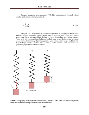 Tampak dari persamaan (7.17) bahwa periode osilasi pegas bergantung