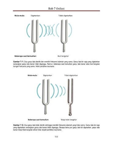Gambar 7.12. Dua garpu tala tidak identik sehingga memiliki frekuensi alamiah yang tidak sama. Garpu tala kiri saja