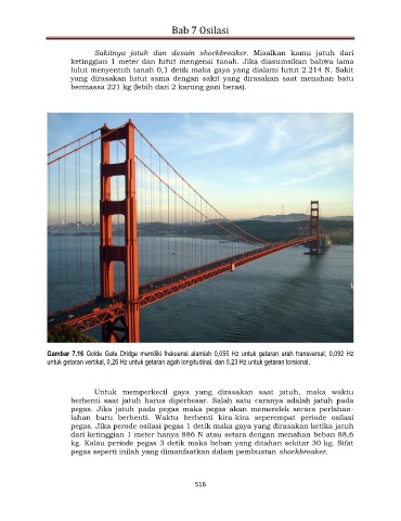 Gambar 7.16 Golde Gate Dridge memiliki frekuensi alamiah 0,055 Hz untuk getaran arah transversal, 0,092 Hz