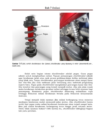 Gambar 7.17.(kiri) contoh shockbreaker dan (kanan) shockbreaker yang dipasang di motor (kiosonderdil.com ,