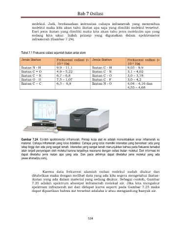 Tabel 7.1 Frekuensi osilasi sejumlah ikatan antar atom