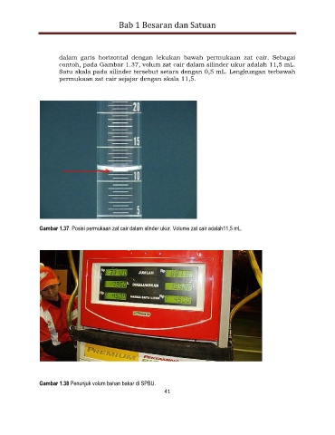 contoh, pada Gambar 1.37, volum zat cair dalam silinder ukur adalah 11,5 mL.