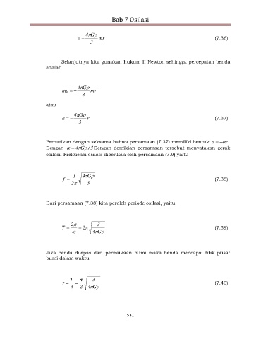 Dari persamaan (7.38) kita peroleh periode osilasi, yaitu