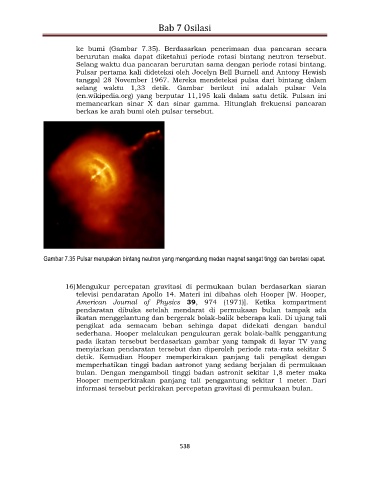 Gambar 7.35 Pulsar merupakan bintang neutron yang mengandung medan magnet sangat tinggi dan berotasi cepat.