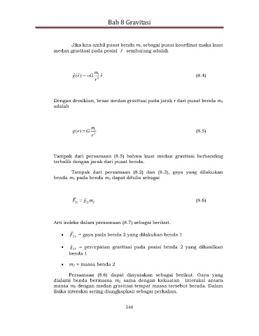 Tampak dari persamaan (8.5) bahwa kuat medan gravitasi berbanding