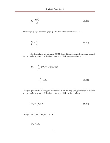 Berdasarkan persamaan (8.23) luas bidang yang ditempuh planet