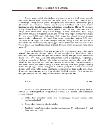 adalah X. Ketidakpastian pengukuran adalah ∆X. Makna ketidakpastian