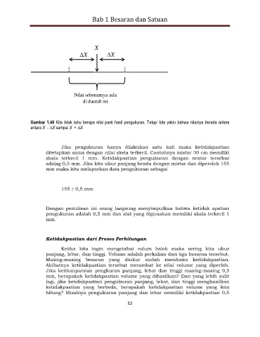 Gambar 1.48 Kita tidak tahu berapa nilai pasti hasil pengukuran. Tetapi kita yakin bahwa nilainya berada antara
