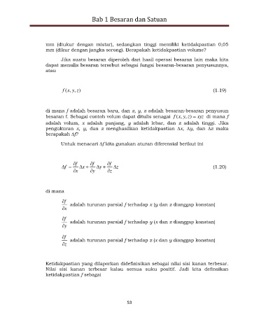 pengukuran x, y, dan z menghasilkan ketidakpastian ∆x, ∆y, dan ∆z maka