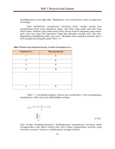 Tabel 1.4 Ilustrasi nilai pengukuran berulang. Xi adalah nilai pengukuran ke-i.