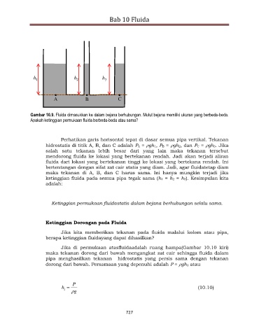 maka tekanan di A, B, dan C harus sama. Ini hanya mungkin terjadi jika
