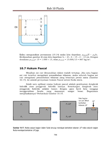 10.17). Ini adalah pernyataan hukum Pascal untuk fluida statis.