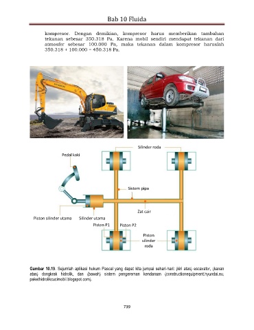 Gambar 10.19. Sejumlah aplikasi hukum Pascal yang dapat kita jumpai sehari-hari: (kiri atas) escavator, (kanan