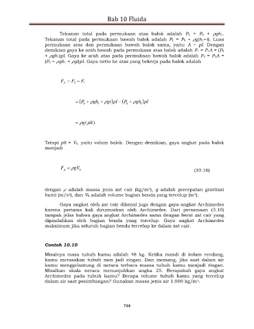 Tetapi plt = Vb, yaitu volum balok. Dengan demikian, gaya angkat pada balok