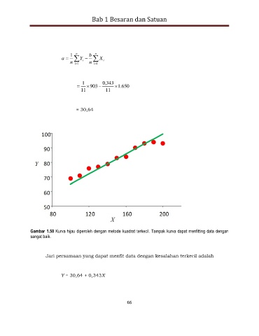 Gambar 1.50 Kurva hijau diperoleh dengan metode kuadrat terkecil. Tampak kurva dapat menfitting data dengan
