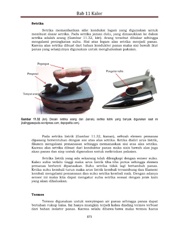 setrika adalah arang (Gambar 11.32, kiri). Arang tersebut dibakar sehingga
