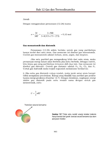 kita tinjau gas yang partikelnya tersusun oleh dua tom. Gas semacam ini
