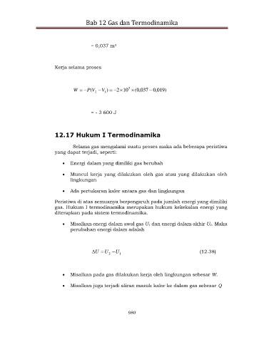 gas. Hukum I termodinamika merupakan hukum kekekalan energi yang